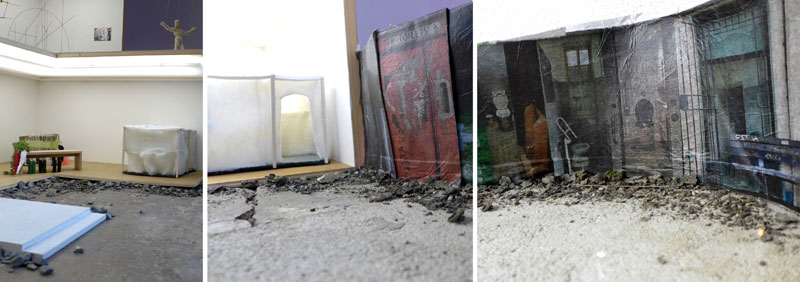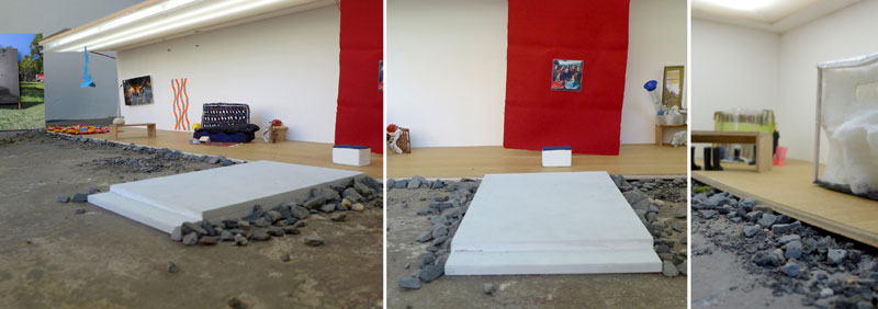 NE TRAVELLEZ JAMAIS Das KloHäuschen reist nach Dresden An sich ist das KloHäuschen dem Reisen gegenüber ja recht kritisch eingestellt - ihr wißt schon. Damals, 2021, als es zum ersten Mal zu einer Reise eingeladen wurde, zum im Arkadienfestival in Ebersberg, da fragte es sich schon sehr, ob und inwieweit exzessives Reisen überhaupt nötig ist und stellte fest: Das bestgehütetste Geheimnis arkadischen Daseins ist es, an dem Ort, an dem man ist, glücklich und zufrieden zu sein. Nach Arkadien fuhr es dann doch. Na - und 2023, da lernt es (lustigerweise auch beim Arkadienfestival) zwei Dresdner Künstler kennen. Sie tauschen sich aus, es kommt zu Besuch und Gegenbesuch - und wir treffen in Dresden auf das Kunst- und Kulturzentrum GEH8 und den GEH8 WERKRaum. So entsteht mit Henz Schmöller, einem dieser beiden Künstler, die Idee, daß das KloHäuschen auch mal nach Dresden reisen könnte – und der GEH8 WERKRaum ist bereit, sich als Feriendomizil zur Verfügung zu stellen. Und wir geben alles, daß das KloHäuschen, das als reiseunerfahrene Immobilie die Welt ja nur von Klischees wie Postkarten und so kennt, sich "wie in Dresden" fühlt - also einschließlich Fassade und Prachttreppe. ![]() Aber .... Das KloHäuschen? Reisen? Für alle, die 2021 die Reisen vom KloHäuschen noch nicht verfolgt haben, hier ein kurzes Update: Also, seit seiner 5. Biennale (2020), besitzt Das KloHäuschen eine mobile Kunsthalle (Architekt: rasso rottenfusser). Diese KH-Kunsthalle hat 5 Stockwerke, Dachterrasse und Außenbereich – alles im Format 1:12. Und ja, damit kann es reisen - und als Fortbewegungsmittel benutzt es dabei seinen etwas speziellen Grundriß, sozusagen als "fliegenden Teppich". Und das Tollste ist: Das KloHäuschen reist natürlich nicht allein: Bei seinen ersten Reisen, da waren seine Reisegefährt*en die Künstler* dieser 5. Biennale. Jetzt hat es seine Reise-Ausstellung neu zusammengestellt: mit dabei sind jetzt über 50 seiner ehemaligen Gäste. Also es hat von seinen bisherigen Reisegefährt*en alle gefragt, die selber schon mit ihm eine eigene Arbeiet gemacht haben - und alle weiteren Einzel-Gäste bis heute. Und alle zeigen jeweils eine künstlerische Arbeit, die was mit der Arbeit zu tun hat, die sie damals mit dem KloHäuschen gemacht haben. Und wir freuen uns, vor Ort in Dresden auf 12 Künstler* aus dem Netzwerk unserer Gastgeber GEH8 zu treffen, die von Heinz Schmöller eingeladen wurden, eine aktuelle freie künstlerische Arbeit zur gemeinsamen Ausstellung beizutragen. Alle Arbeiten sind dabei natürlich auch in Miniatur, im Format 1:12. Und die echten, also die großen Arbeiten, die finden sich als Doku in unserem Katalog, den ihr hier online anschauen könnt: +++ DOWNLOAD KATALOG als pdf +++FotorundgangUnd hier einige Einblicke in die Ausstellung. Namen der jeweils sichtbaren Künstler immer von links nach rechts. Fotos: Tiziana Foit und Anja Uhlig ![]() Dachterrasse -1: Peter Kees - Uschi Siebauer - JC Leopold ![]() Dachterrasse -2: JC Leopold - Uschi Siebauer ![]() 5. Stock -1: Johannes Lotz - Vincent Mitzev & Valio Tchenkov - Uwe Jonas - Matthias Bausch - alle weiteren s. nächstes Bild ![]() 5. Stock -2: mittleres Bild: Matthias Bausch (Wand) - Zoe Gudovic (Objekt) - Heinz Schmöller (Wand + Detail links) - Lukas Oertel (Sockel) - Andrea Unterstrasser (Wand + Detailbild) - Regine Elbers & Martina Kändler (Leuchtkasten) ![]() 5. Stock -3: mittleres Bild: Regine Elbers & Martina Kändler - Heidi Mühlschlegel (Vorhang) - Ena Oppenheimer - Martin Schmidt (Objekt + Dateil links) - Albert Coers (Ecke) - Olaf Probst (Wand) ![]() 4. Stock -1: Anton Thorwart - Stephanie movall - Carolin Wenzel - Bela Alvarez - Stefan Hagen (Objekt) - weitere an der Wand s. nächstes Bild ![]() 4. Stock -2: Stefan Hagen (Objekt) - Helena Rossner (4 Zeichnungen) - Torsten Hink (Plakate Wand + Boden) - Claudia Kleiner (2 Ölbilder) - Rupert Joerg (Boden) - Natalja Herdt (Detail an Scheibe) ![]() 4. Stock -3: Rupert Joerg (Boden) - Monika Kapfer (Ecke) - Natalja Herdt (Scheibe) - Albert Coers (Ecke oben aussen) - rasso rottenfusser ("aussen") ![]() 3. Stock -1: Tobias Bohnet (Foto, Wand) - 9Volt (Aufsteller) - Veronika Veit (Leuchtkasten) - Tommy Schmidt (Wand - 18 Ikonen verschiedener Künstler*) - Thomas Judisch (angeschn.) ![]() 3. Stock -2: Thomas Judisch (Objekt) - Ulrike Mundt (Kreuz) - Anette Friedrich Johannessen (auf der Bank) - Stefan Maria Marb (Boden) - Martina Kändler (Wandobjekt) ![]() 3. Stock -3: Sebastian Klug - Marleen Andreev - Raquel Ro ![]() 2. Stock -1: Kristin Brunner (Boden, angeschn.) - Regina Baierl (Wand) - Yutta Bernhardt & Das KloHäuschen (Sockel) - Andreas Pytlik (Wand) - Stephanie Maier (angeschn.) ![]() 2. Stock -2: Stephanie Maier - Günter Nosch - Suntje Sagerer (Wand) - Judith Egger (hängend) ![]() 2. Stock -3: Nina Annabelle Märkl - Patricia London Ante Paris - Guida Miranda & Christoph Reiserer ![]() 1. Stock -1: Kristin Brunner (Boden und Decke) - Mediendienst Leistungshölle (Wand) - Mary Kim (Wand) ![]() 1. Stock -2: Mary Kim - Janina Totzauer & Magdalena Jooss (auf der Bank) - Johanna G. Eder - Andrea Golla (im Hintergrund) ![]() 1. Stock -3: Stephanie Felber - Sabine Schlunk (Mitte + Detail li.) - Manuela Müller ![]() Aussenbereich -1: Lisa Maria Baier (Bühne) - David Adam (Diorama) - Andreas Mitterer (Holzhaus) ![]() Aussenbereich -2: David Adam (angeschn.) - Eingang - Andrea Golla (1. Stock Eingansbereich) - weitere Einblicke 1. Stock ![]() Aussenbereich -3: Eingansbereich - Krista Burger & Kenneth Letsoin (Wand) ![]() Blick von Außen: Foto: Tiziana Foit Ne Travellez JamaisAch, und weil wir immer wieder gefragt werden, was dieser Titel soll: Es muß wohl an seiner vorsichtigen Einstellung gegenüber dem Reisen (und am mit dem Reisen oft einhergehenden Sprachwirrwarr) gelegen haben, daß dem KloHäuschen bei seiner ersten Reise zufällig (in Neonschrift) der Satz "Ne travaillez jamais" auffiel, den es jedoch als "NE TRAVELLEZ JAMAIS" las und mi